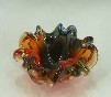 Smalll overlay glass bowl made from two / three layers of colours glass fused under heat one inside the other and shape.